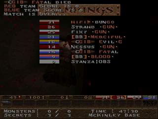 After what seemed like an eternity, the GUN hpb's prevail to win the Tourney For Cheaters championship. Taking our first 'real' HPB title by beating some of the best CTF HPB clans in Quake CTF history. Here is some score shots from our final match: