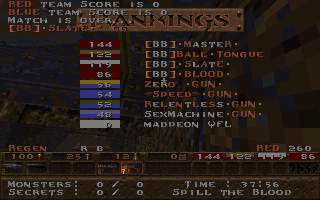 Yet another game we should've won easily.. We actually handled BB pretty well in our CTF1 match with them, when we had our normal HPB lineup. Unfortunately I can't seem to find a pic for that match though.. Anyway, after several of our HPB players had left, we were forced to play this game with a substandard team. Speed was normally an LPB and played this match on modem with little experience of what the lag is like.. Coupled with my connect being as useless as it's been for the past several months (constant ping spiking of 5000+) and Zer0 and Relentless being the only suitable players to field, BB was able to take advantage and win.