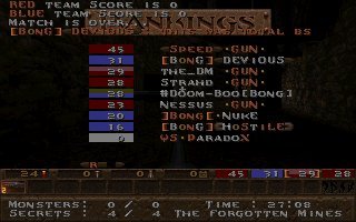 | This was a pretty interesting match. We knew going in that Bong was a really good clan on the Mines level, and that we'd have to step it up on them. We were able to squeeze out a win from these guys in a pretty close game. However, when we got back on a pretty big level (CTF2M1), we were able to open it up and bring in the caps. Thanks to Bong for some good games. Another good game to our guys as well. |