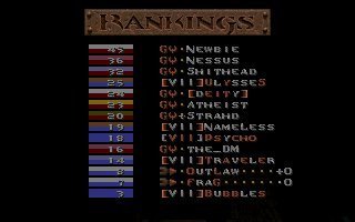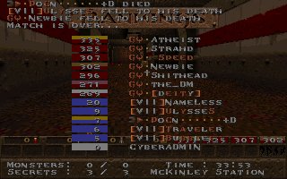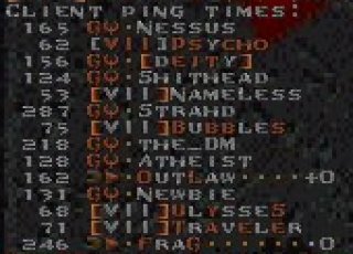 Arrising Death II - LPB - Well, this 7 on 7 lpb match was harder to set up than the 7 on 7 hpb match we had against THC if you can believe it or not. It took aproximately 5 hrs before we were able to play the first game. I think we went through a couple of servers and sucked up all their bandwidth before finally crashing them :). Anyway, we finally agreed to play on two different servers, with the first being one where DA/7 got the better pings and the next where we got the better pings. Once we finally started going our guys played a smart game on CTF4 and won despite being heavily outpinged. When we got back on our server, it was obvious that DA/7 couldn't handle us once we got the advantage. After all that's said and done, I'd have to say that it was pretty fun. The members from clan Seven were pretty cool. Anyway, congrats to our guys and Qusaders. We rock together! :)