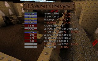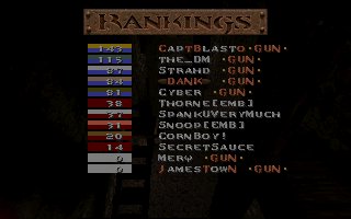 I think this was a great match overall. When our guys went into the first match, EMB gave them a really tough time. It seemed that neither clan could control their base for very long, and there were some pretty intense captures made by both clans. The second, we got our d back in gear mainly due to Capt's great effort and were able to control the game because of it. Being on modem and having one of the worst pings by far of any player, Capt totally rocked the whole game. When he died, he even came back with the enemy flag for a cap to make up for his death :). Anyway, I believe both sides played really well, and I'm hoping we can continue to do as good as we have been. And the Gunslingers walk on....
