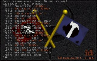 | Hehe. This was a pretty funny match. I think GoD (Clan GIB) actually spent more time taunting us than playing. :) But I guess they had a pretty good time. I know I was rolling watching this match, heh. Anyway, it was once again a typical CTF1 game... Shatter goes in, takes their base, Rel holds ours, Capt kills everything in the middle, and Zero runs the flag freely :). Like a machine baby! W00p! |