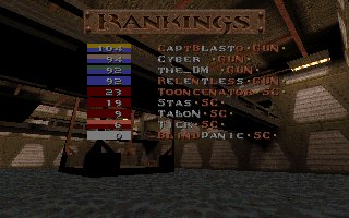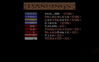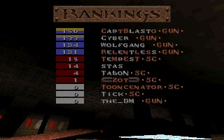 This was our first match in a long time where the majority of players were on modem. Actually, the match was scheduled to be an all HPB match, but we ended up matching their ISDN guy for the first two games so he could play. Overall, I think the game went very well, and shows a lot of promise for our HPB guys in the future. I know I had a really good time playing on modem and against the Shred Co. guys. DM and I had the opportunity to play against a few of them at the last Ohio-LanFest and had a blast. Anyway, I'm hoping we can get together with these guys again sometime soon. Who knows.. maybe we can get together with them at the next Ohio-LanFest :).